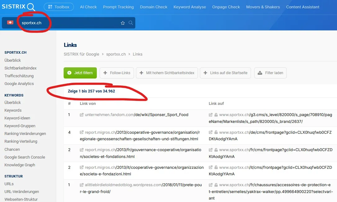 Auf Sportxx.ch zeigen immer noch 35’000 Links
